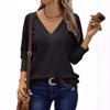 Женская футболка с V-образным вырезом, открытыми плечами, длинными рукавами и пуговицами — купить товар онлайн с бесплатной доставкой до всему миру!