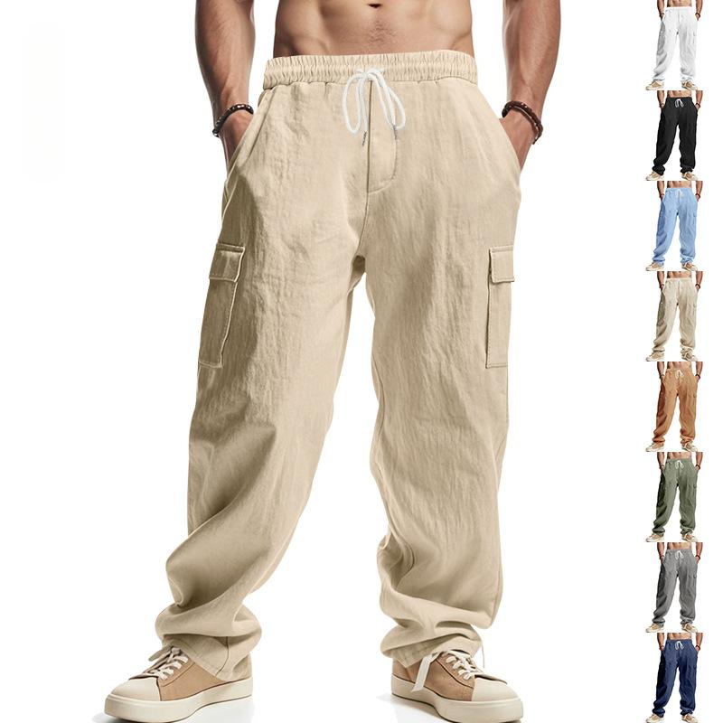 Мужские льняные брюки четыре сезона тонкий дышащий рабочий костюм многокарманные свободные повседневные трендовые широкие брюки — купить товар онлайн с бесплатной доставкой по всему миру!