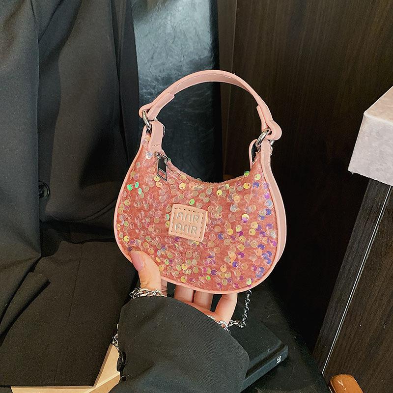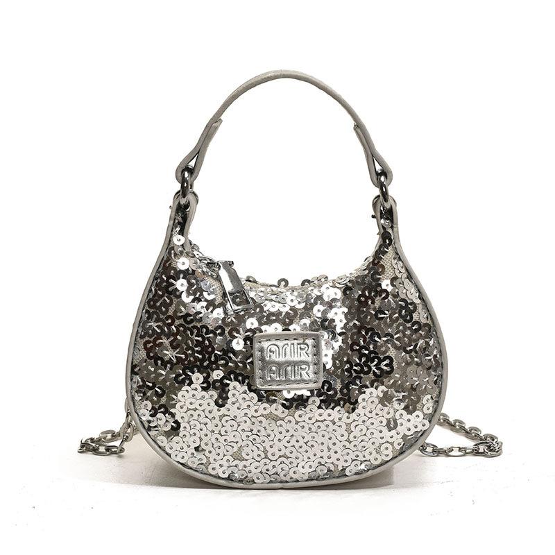 Сумки Мини маленькая сумка с пайетками 2025 новинка европейская и американская мода нишевая универсальная ручная переноска мессенджер цепочка сумка-пельмень