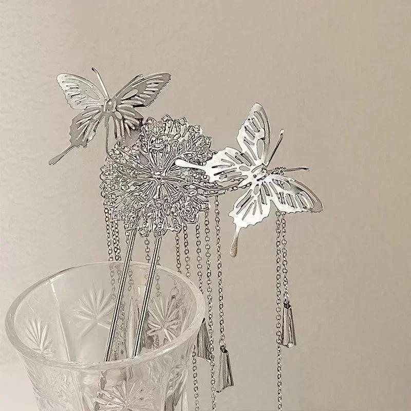 Женская Мода Креативные Заколки для Волос в Виде Бабочек и Цветов Изысканные Заколки с Длинной Кисточкой Свадебный Головной Убор Материал Цинковый Сплав Аксессуары Подарки