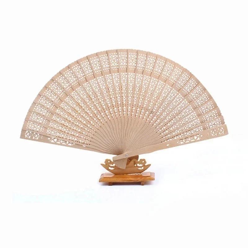 Складные полые деревянные веера с ароматом китайского сандалового дерева, ручные веера