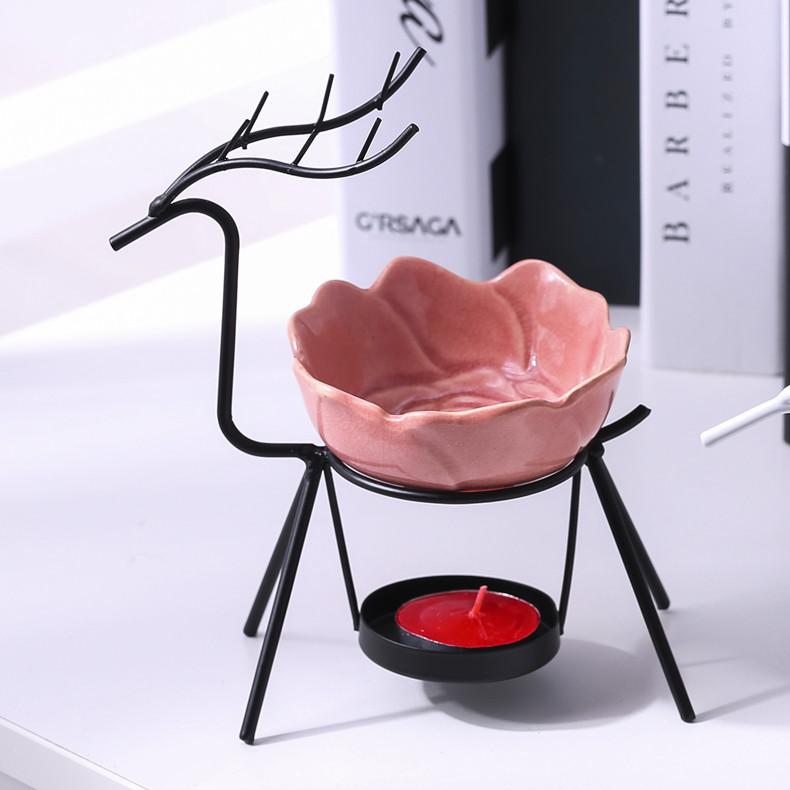 Маленький олень Железное искусство Масляная горелка для воска Керамический подсвечник Нагреватель кунжутного масла Спа Йога комната Медитация Домашнее украшение