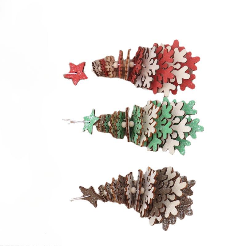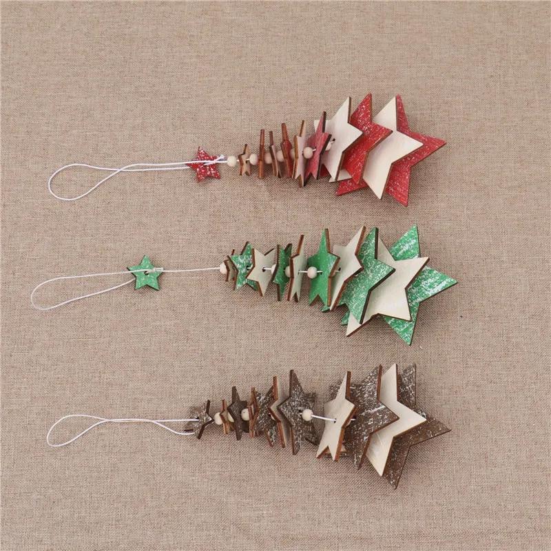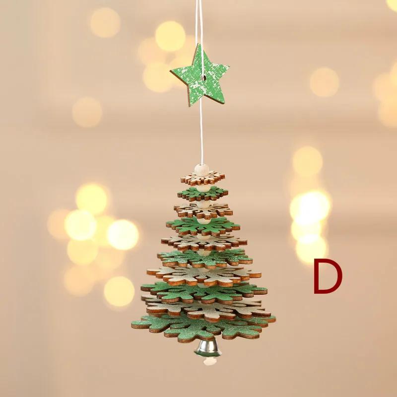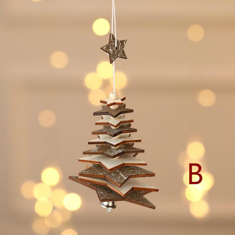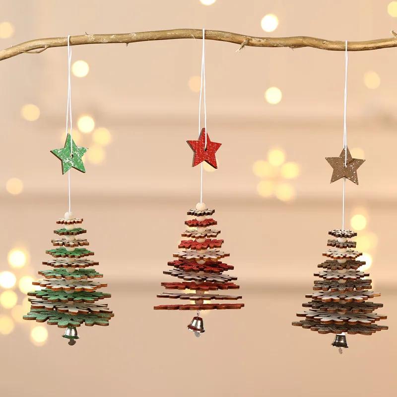 Рождественская деревянная подвеска-колокольчик, креативное трехмерное маленькое подвесное украшение в виде пятиконечной звезды-снежинки на рождественскую елку