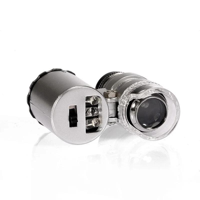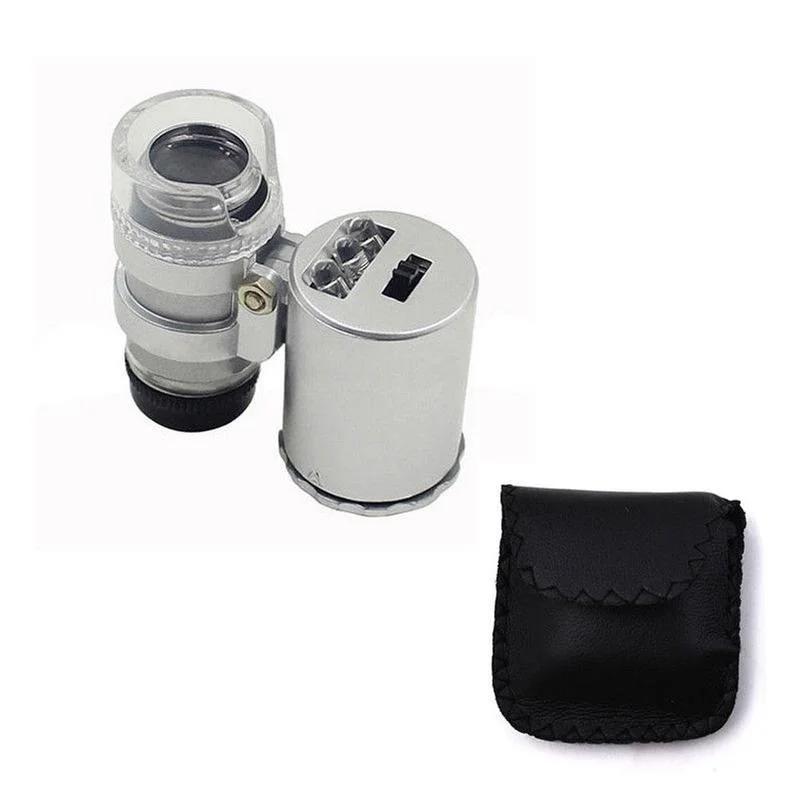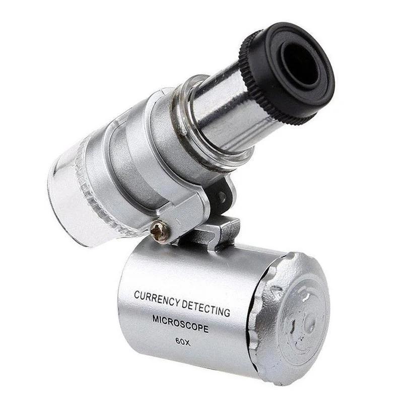 Мини 60X Карманный микроскоп LED Ювелирная лупа УФ Детектор валюты Портативная лупа Увеличительная глазная линза