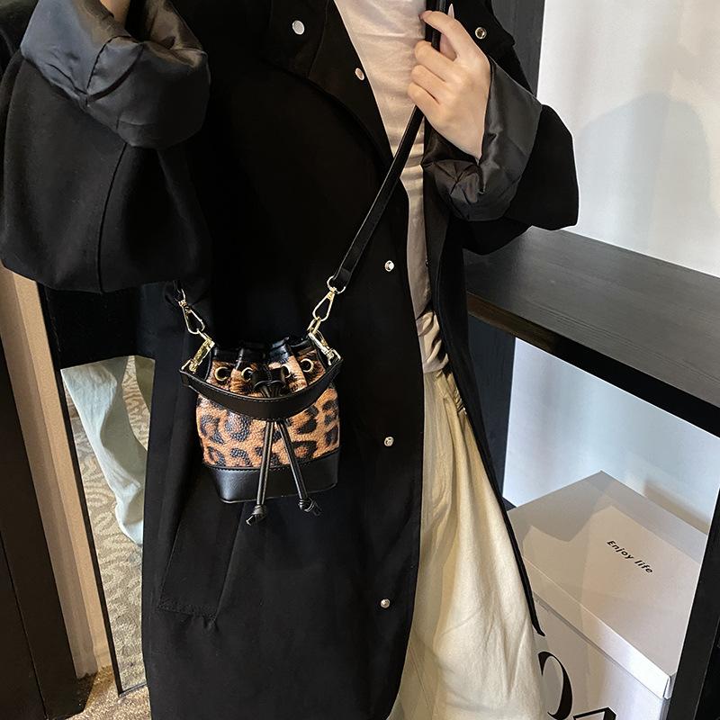 В этом году популярная женская сумка 2025 новая корейская версия модной сумки через плечо с леопардовым принтом, портативная сумка-мессенджер, мини-сумка-ведро