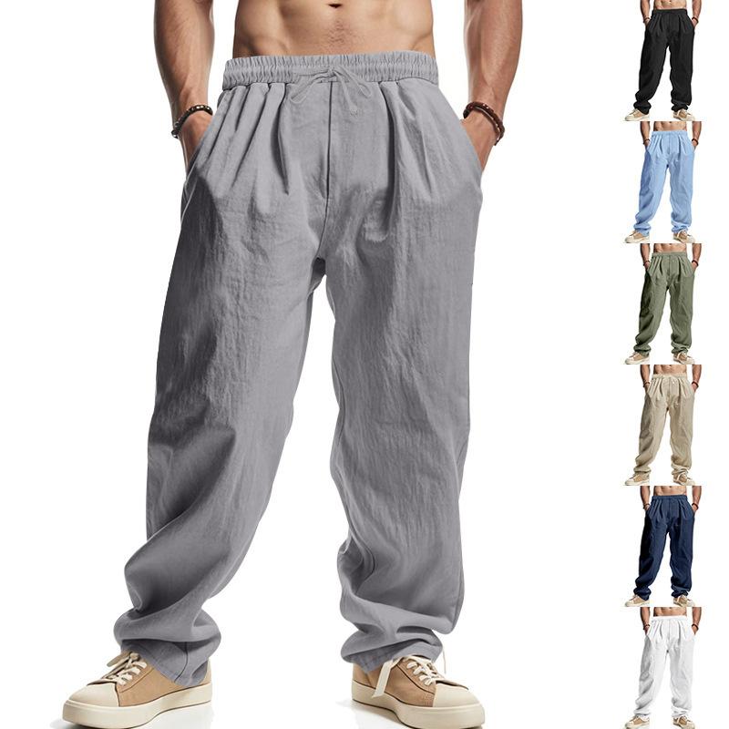 Мужские свободные повседневные льняные брюки хип-хоп пляжные спортивные с широкими штанинами