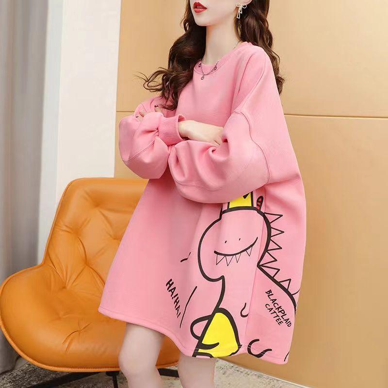 Женское худи оверсайз с длинным рукавом в корейском стиле, с мультяшным принтом, с круглым вырезом, свитшот, весенне-осенние свободные повседневные топы, уличная одежда