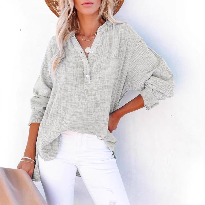Женская однотонная рубашка с длинными рукавами и застежкой на одну пуговицу — купить товар онлайн с бесплатной доставкой по всему миру!