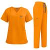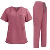 Женский однотонный топ с короткими рукавами и V-образным вырезом, карманами, рабочая одежда, комплект из двух предметов