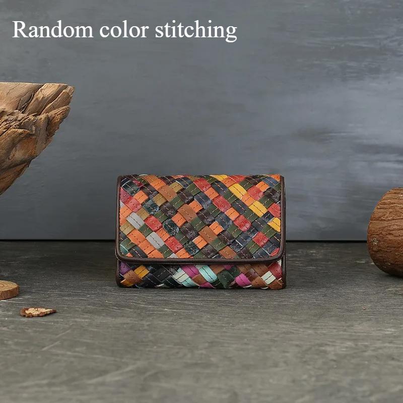 Johnature Плетеный короткий кошелек из натуральной кожи, случайная цветовая вставка, большая вместимость, много отделений, складной кошелек с пряжкой
