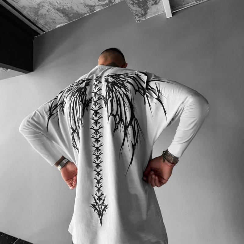 Европейский и американский осенний топ с длинными рукавами, принтом, простым круглым вырезом, повседневный, персонализированный, мужская одежда