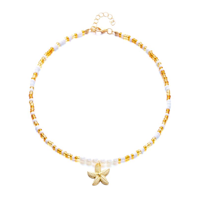 Ожерелье «Морская звезда» - Серф и пляжная бохо-бижутерия Морская звезда Черепаха Ожерелья-чокеры из бусин, Регулируемые ожерелья, Океанский подарок