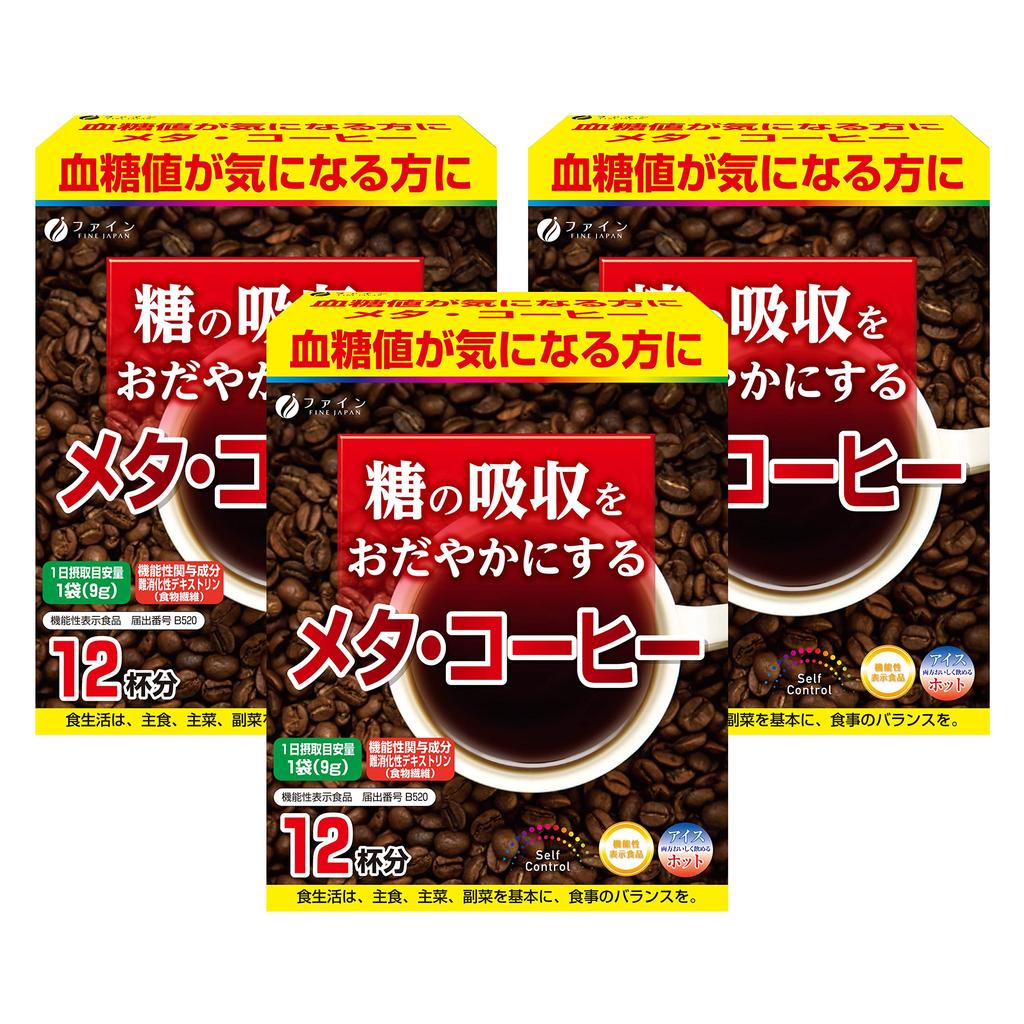 FINE JAPAN Meta Coffee Замедляет всасывание сахара Содержит неперевариваемый декстрин Сделано в Японии х 12 х 3 пакетика [Функциональное питание] - - - (9г пакеты)