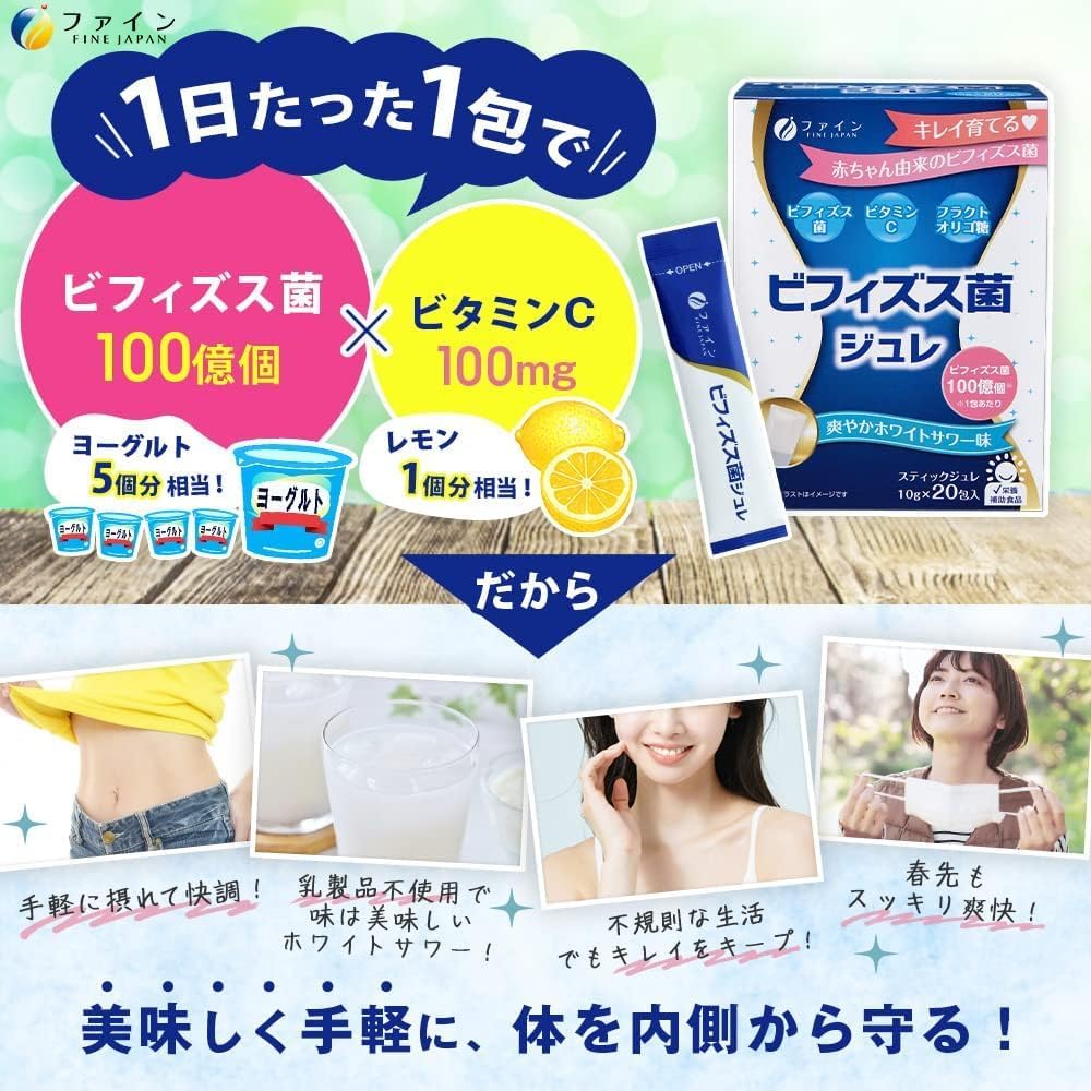 Этот продукт — вкусное желе, основным ингредиентом которого являются полезные бифидобактерии, а также витамин С, олигосахариды и другие ингредиенты для красоты, которые понравятся женщинам.. ●Имеет вкус йогурта и освежающий вкус. ●Один пакетик содержит примерно в пять раз больше бифидобактерий, чем одна порция йогурта (около 100г). (По сравнению с коммерчески доступным йогуртом, содержащим бифидобактерии)