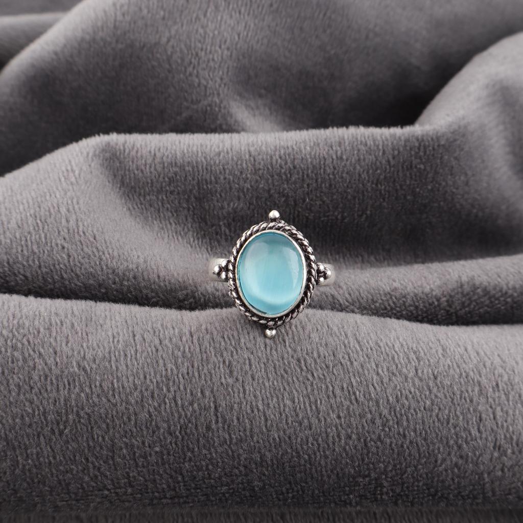 Кольцо с камнем «кошачий глаз» синего цвета, Ювелирное изделие из серебра 925 пробы, Кольцо ручной работы, Балансирующее ювелирное украшение, Подарок для женщин