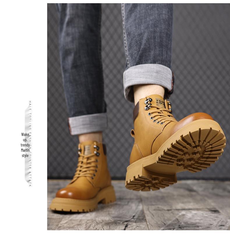 Мужские ретро ботинки Мартин на высоком голенище с плюшевой подкладкой - Британский стиль, повседневные рабочие ботинки на осень/зиму 2024
