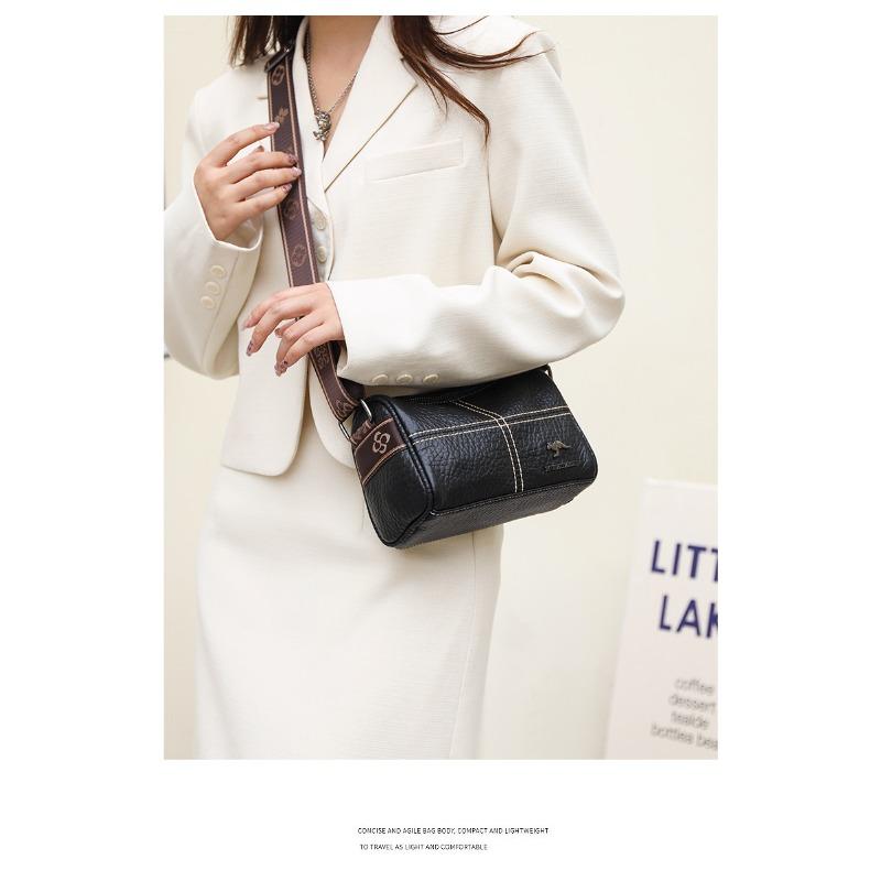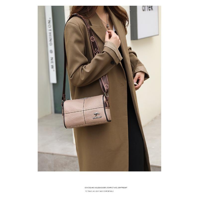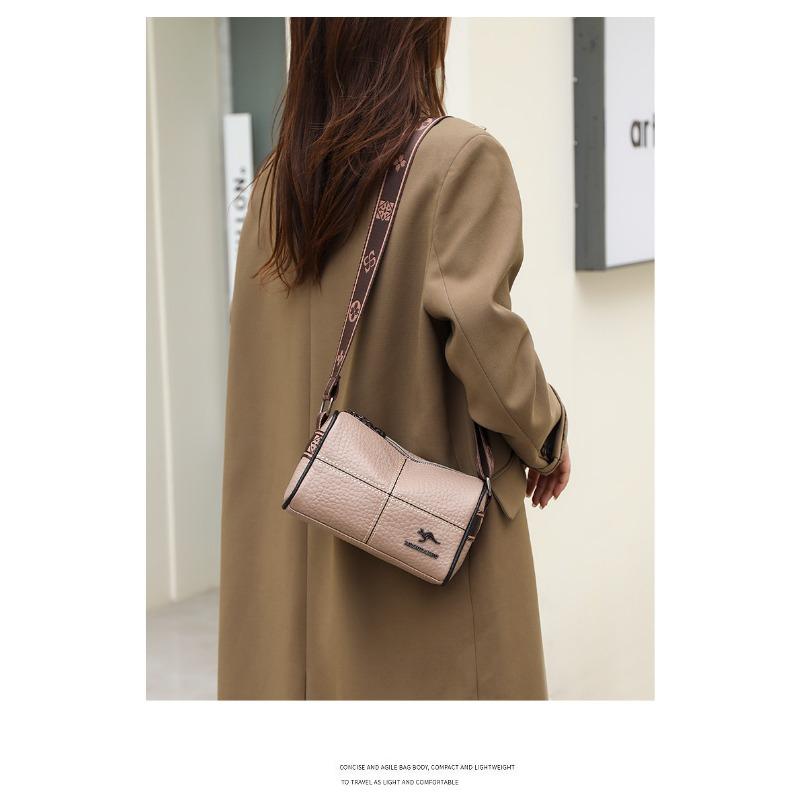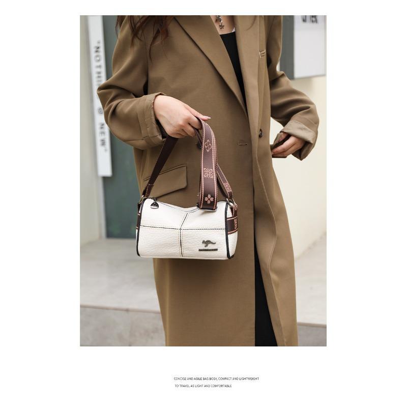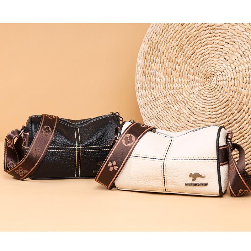 Кожаная сумка Женская сумка Простая мода Широкий плечевой ремень Одноплечевая сумка Кроссбоди Первый слой коровьей кожи AVE