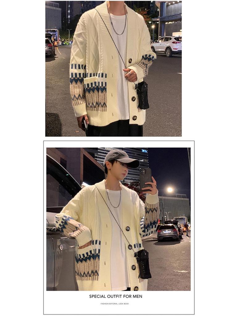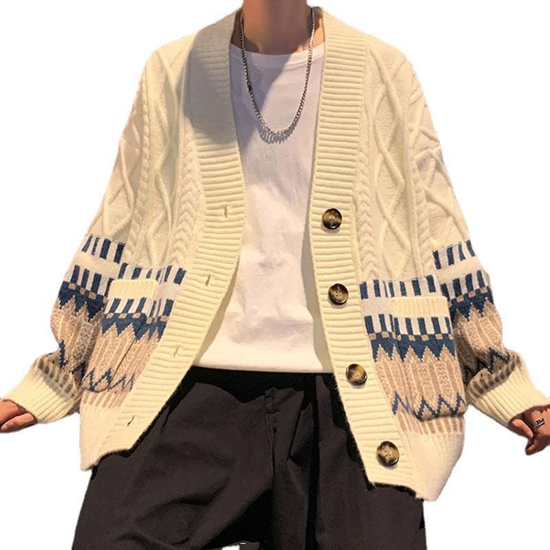 Мужской вязаный кардиган оверсайз - Модный топ с длинным рукавом для осени/весны — купить товар онлайн с бесплатной доставкой по всему миру!