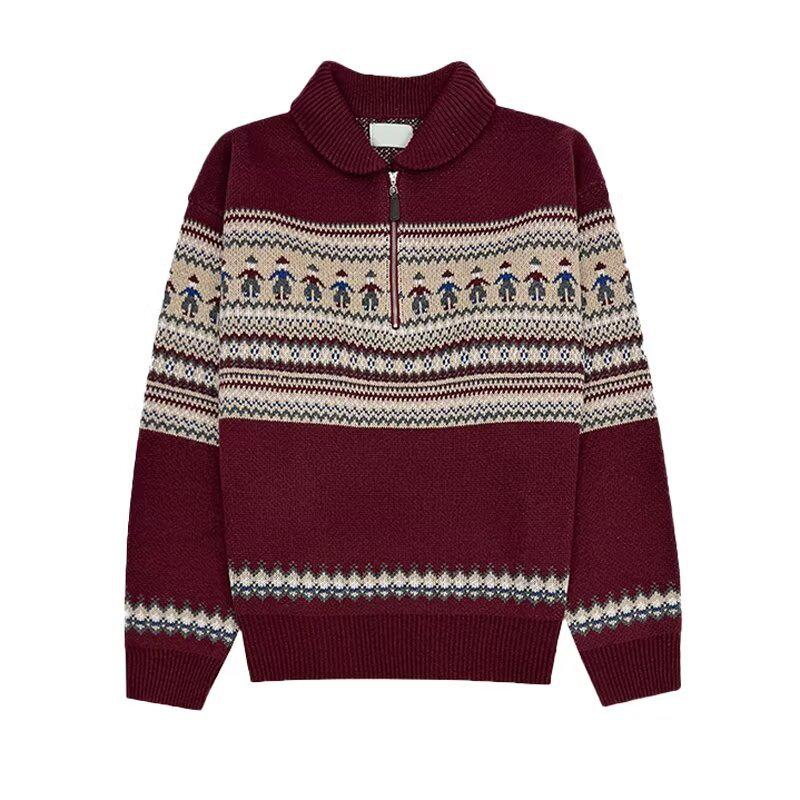 Мужской ретро красный свитер с лацканами, длинным рукавом и молнией до середины груди для осени и зимы