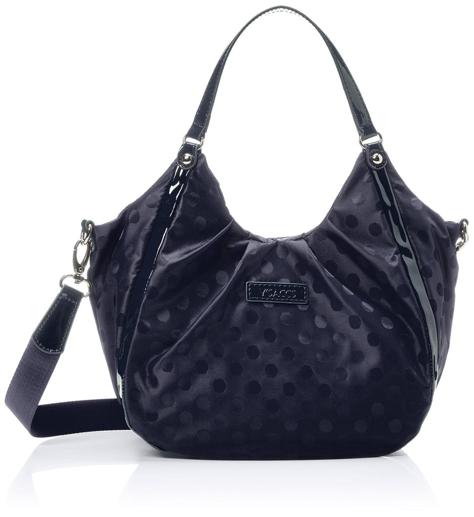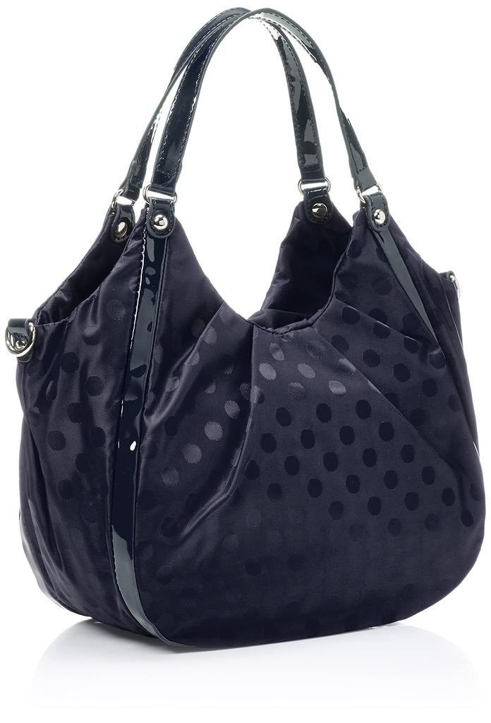 Сумка [Isaac] двухсторонняя, тоут с жаккардовым узором в горошек, эмалированной отделкой, темно-синего и других цветов, женская, (67)