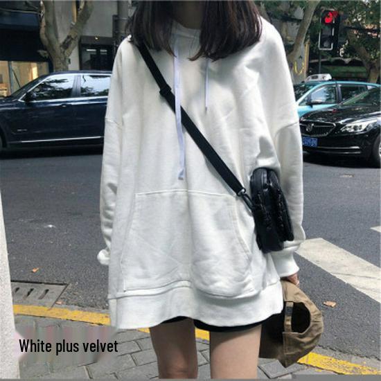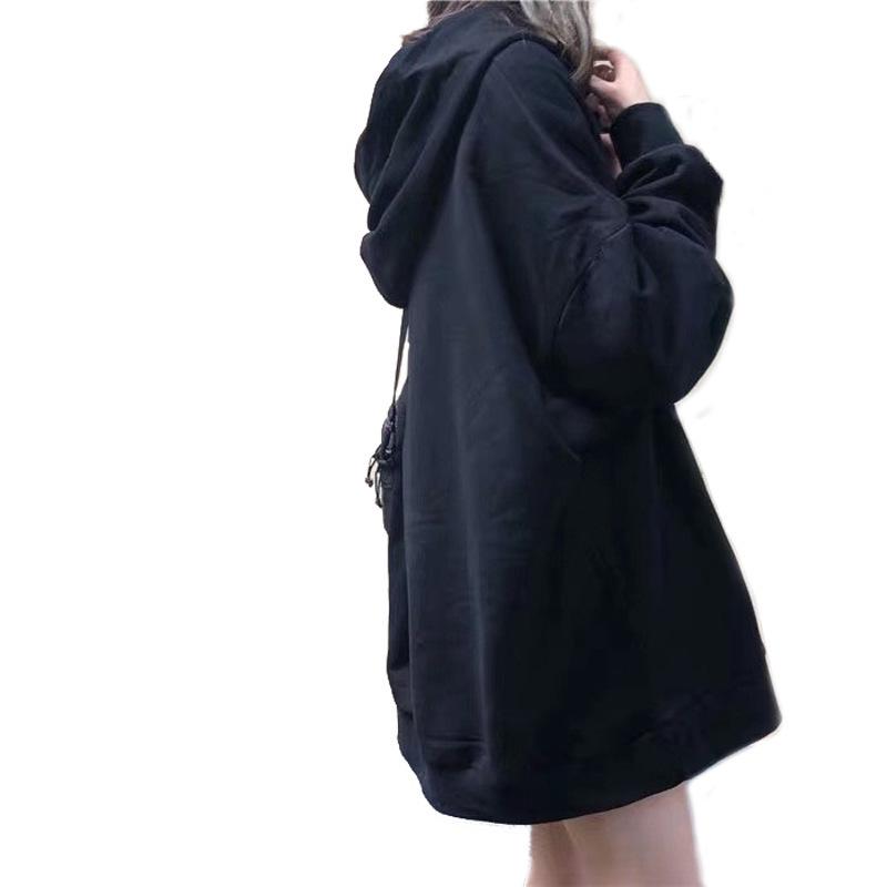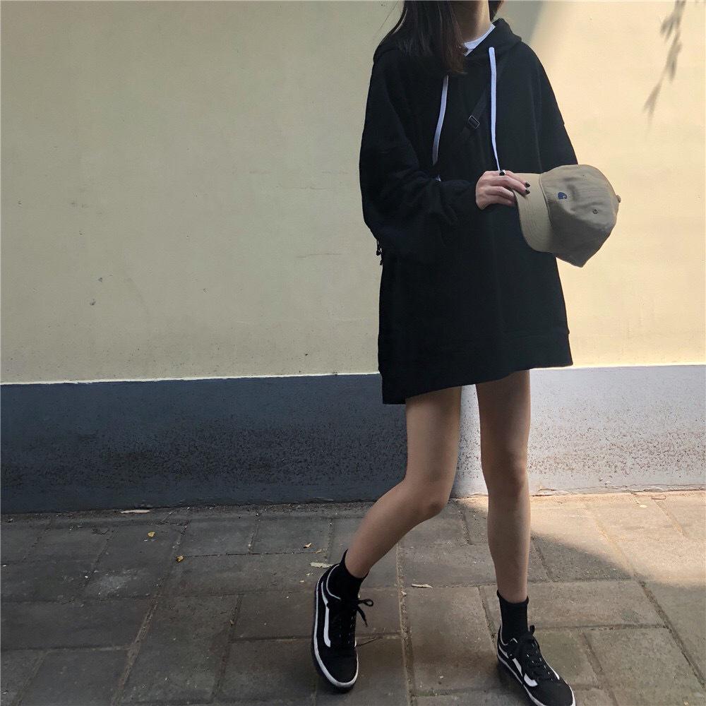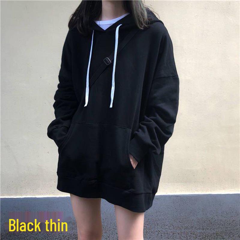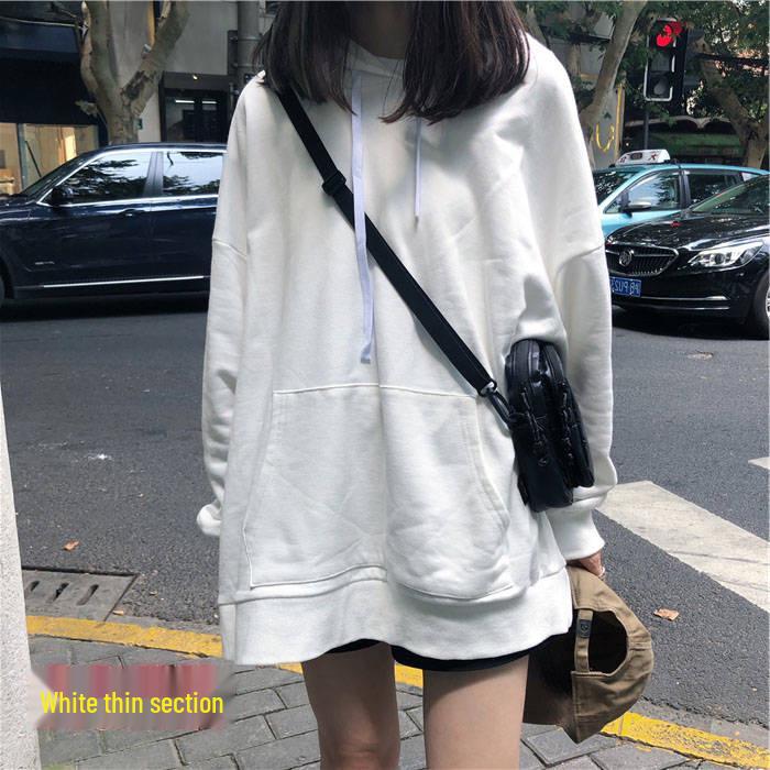 Женская толстовка с капюшоном в корейском стиле на осень 2025 года - однотонная, универсальная, средней длины, свободного кроя, с длинными рукавами.