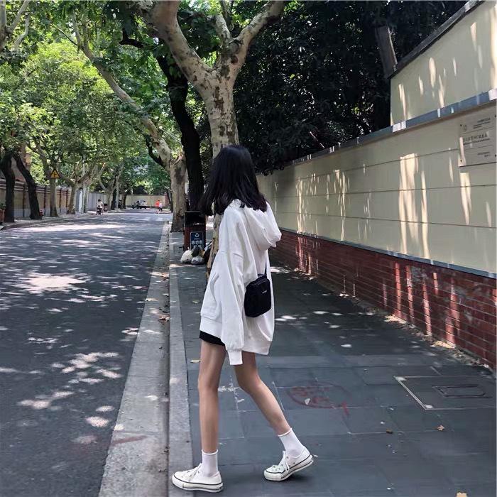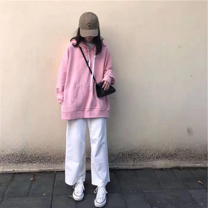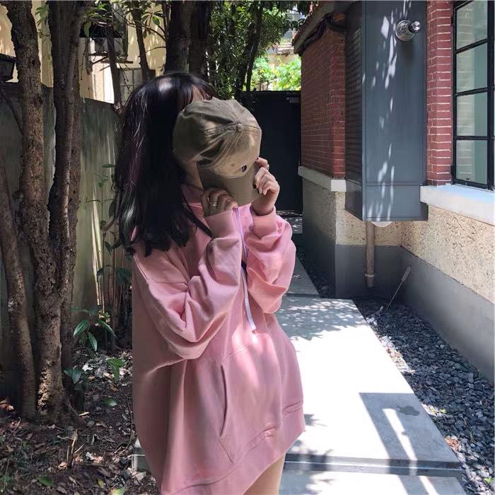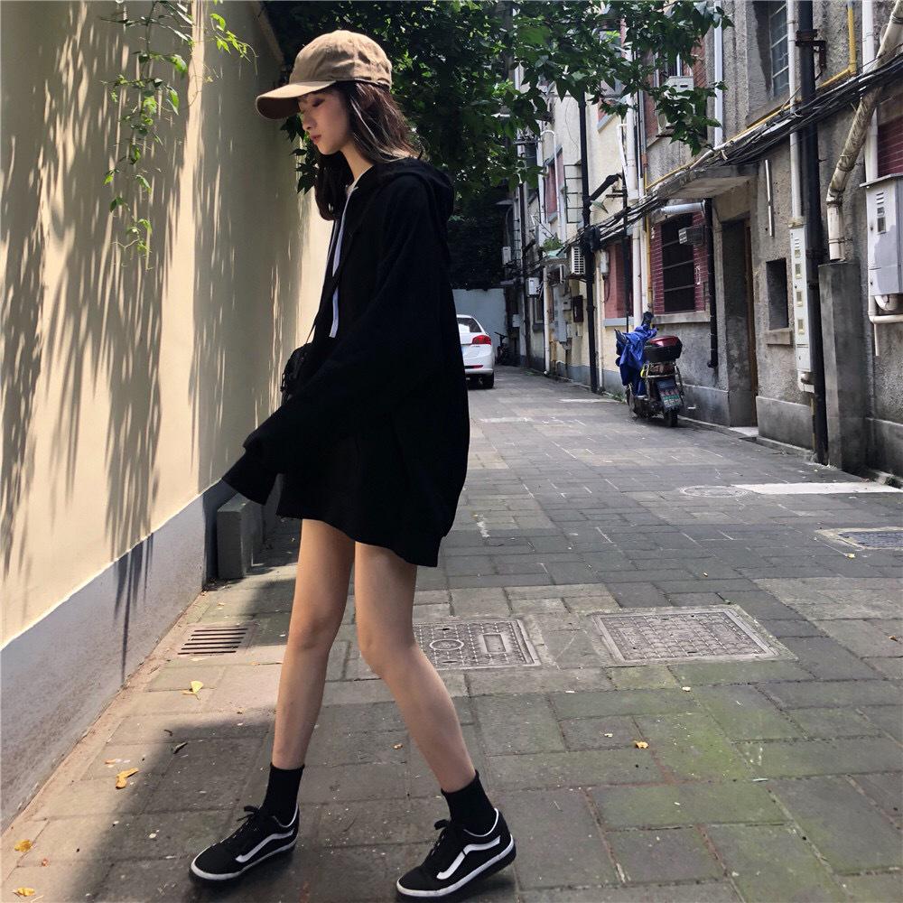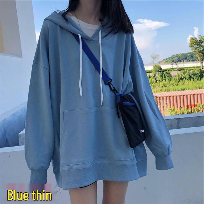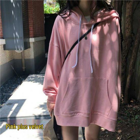 Женская толстовка с капюшоном в корейском стиле на осень 2025 года - однотонная, универсальная, средней длины, свободного кроя, с длинными рукавами.