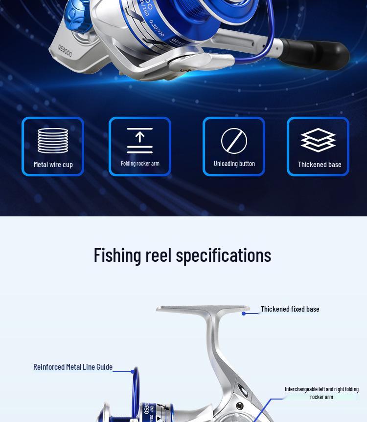 Набор для рыбалки Kemalong полностью из металла: Катушка-чашка, Морское удилище, Скальное удилище, Спиннинговая и Кастинговая катушка.