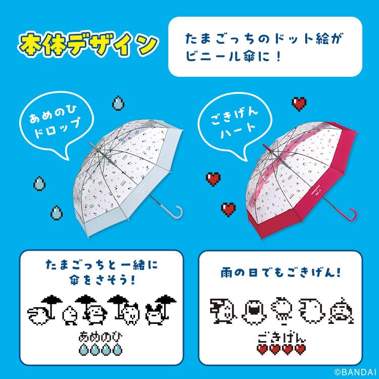 Tamagotchi x Sax no Hi Большой зонт-трость 61 см, Коллаборация персонажей из игры, Стильный, Милый, Фотогеничный, Для поездок на работу или учебу, Ретро Wpc.