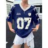 Последняя женская футболка № 07 с принтом букв, V-образным вырезом и коротким рукавом, летняя футбольная майка, свободная, повседневная, спортивная, женская пижама, футболка Y2k