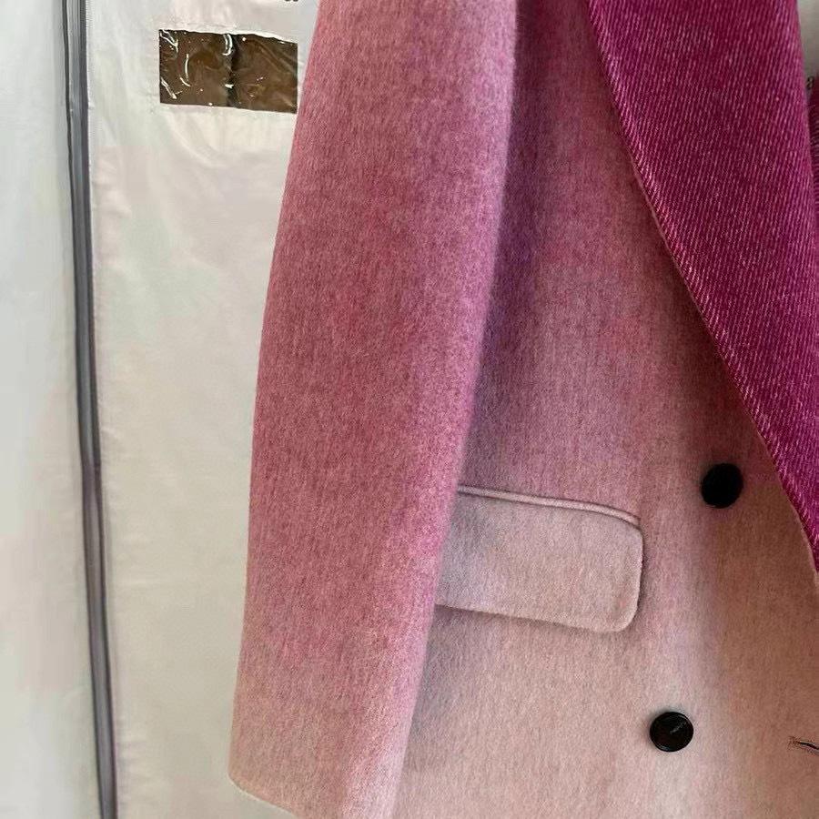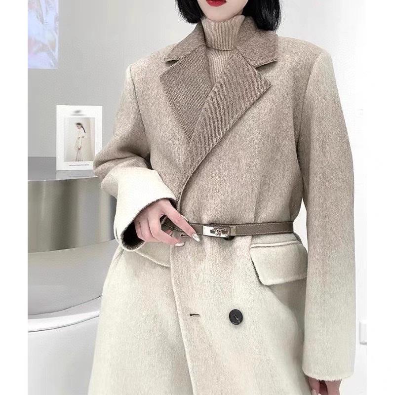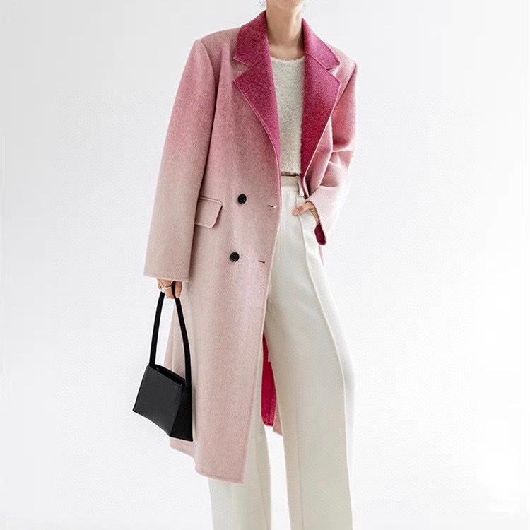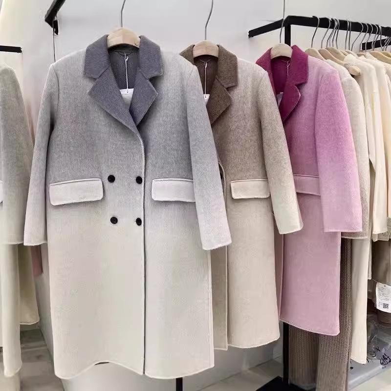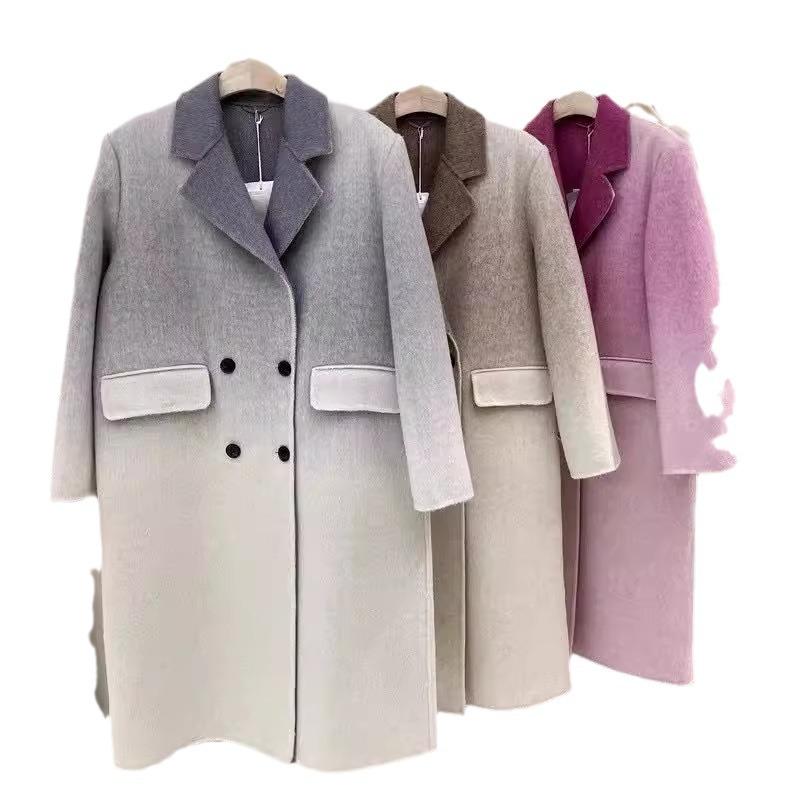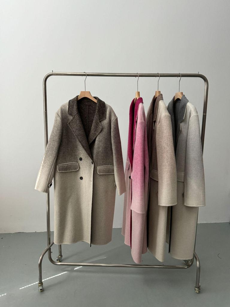 Женское пальто средней длины из двухстороннего кашемира из 100% шерсти с градиентом на осень/зиму 2024