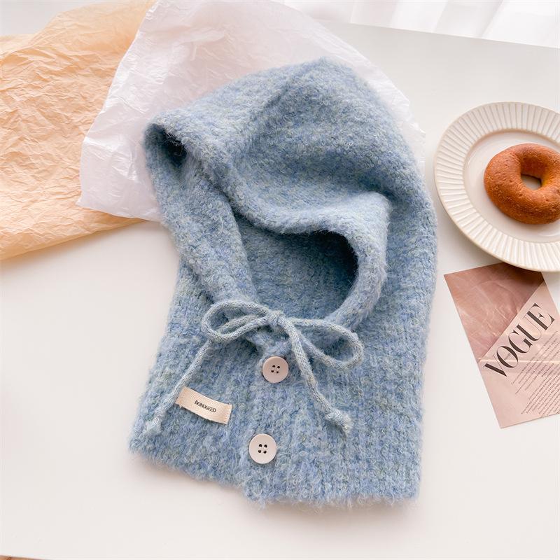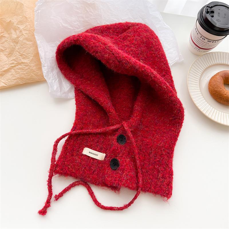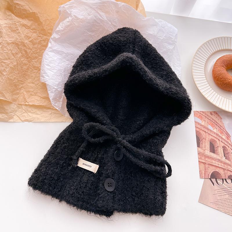 Шапка-балаклава на шнурке, однотонная, универсальная, вязаная из шерсти, зимняя, теплая и защищающая уши