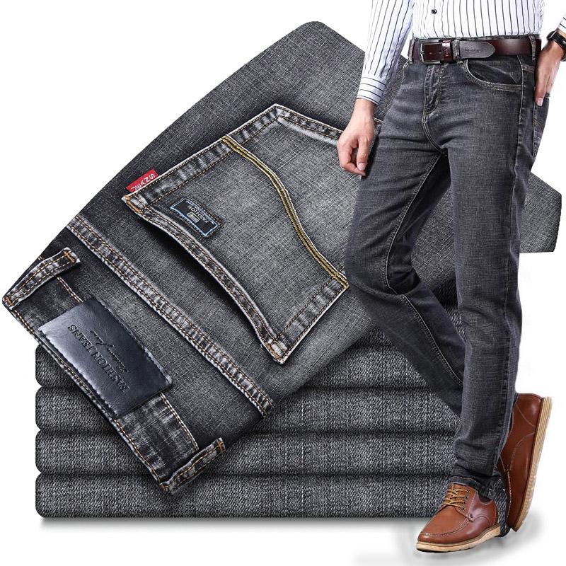 Классические осенне-зимние мужские серые деловые джинсы и брюки из мягкого эластичного денима от мужского бренда черного и синего цвета — купить товар онлайн с бесплатной доставкой по всему миру!