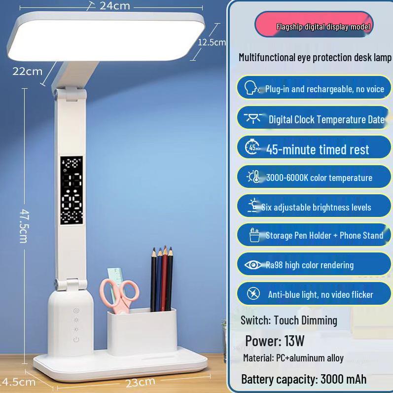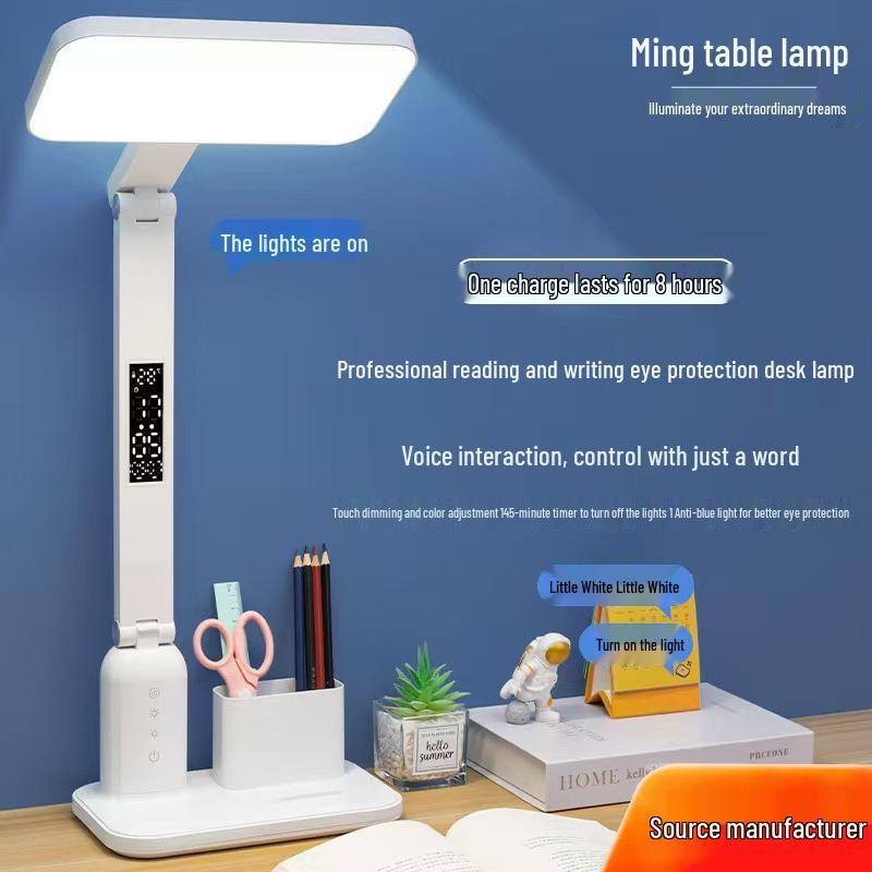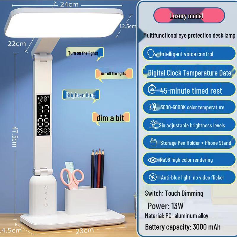 Перезаряжаемая и подключаемая настольная лампа для студентов с голосовым управлением и цифровым дисплеем, защита глаз, сертифицирована AA, специальное подарочное издание.