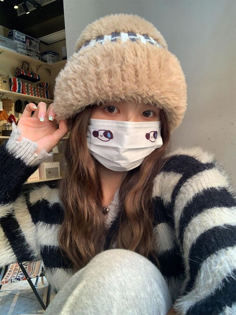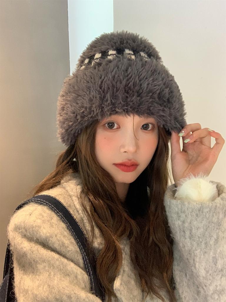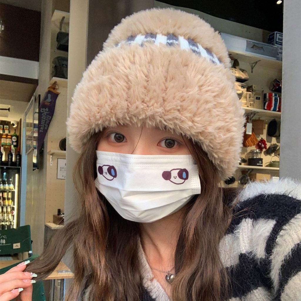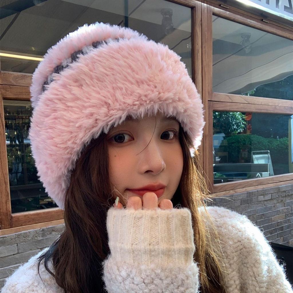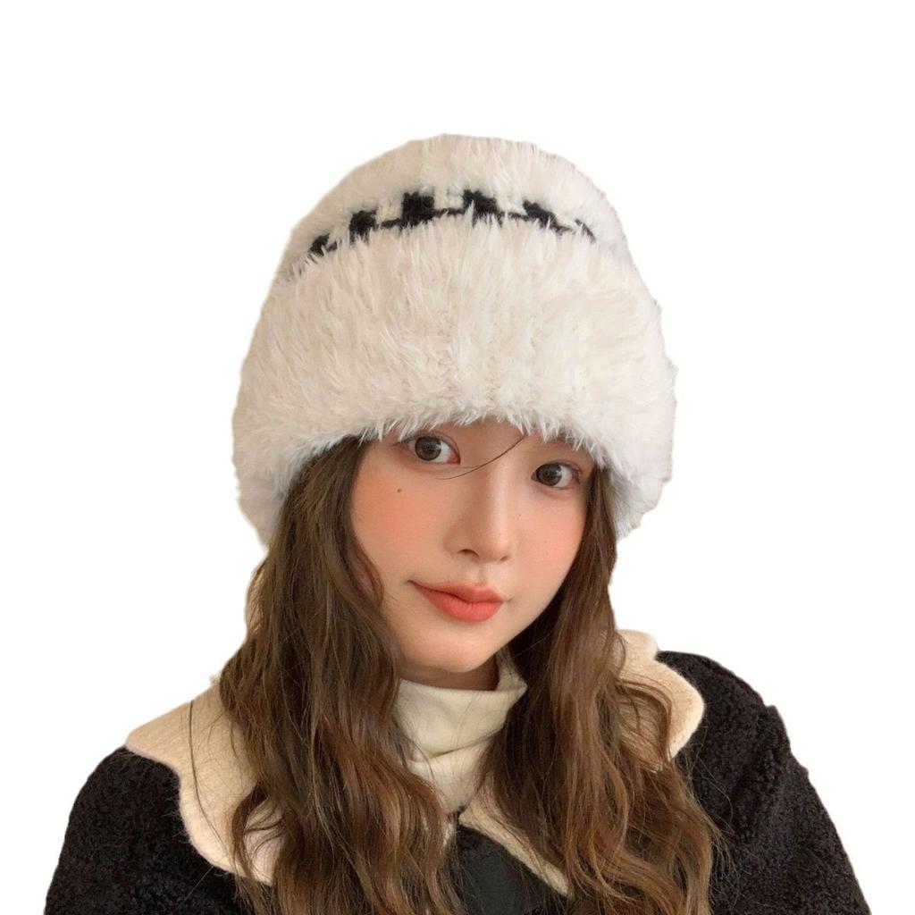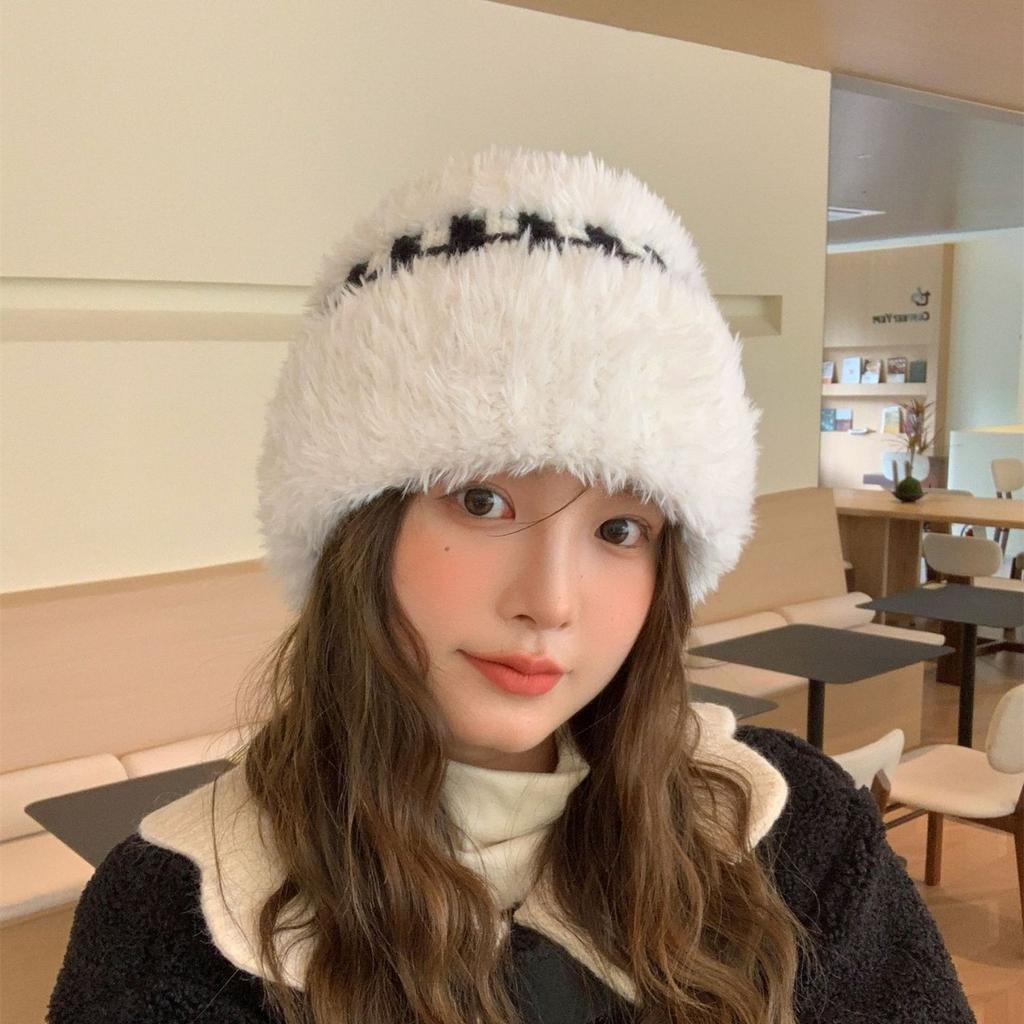 Новая зимняя белая плюшевая вязаная шапка женская теплая утолщенная защита ушей шерстяная шапка универсальная шапка от холода