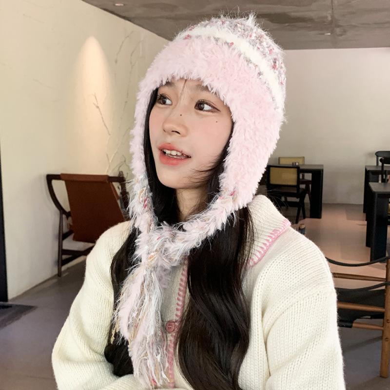 Шерстяная шапка женская лицо маленькое Майяр зимняя с бахромой косички утолщенная тепловая защита ушей шапка холодная вязаная шапка холодная шапка