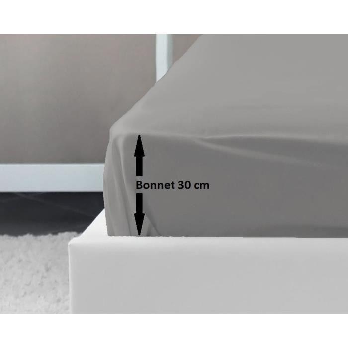 LOVELY HOME Drap Housse 100% coton 180x200x30 cm gris clair
