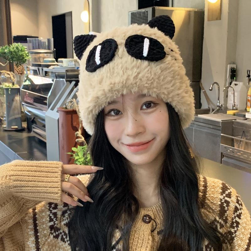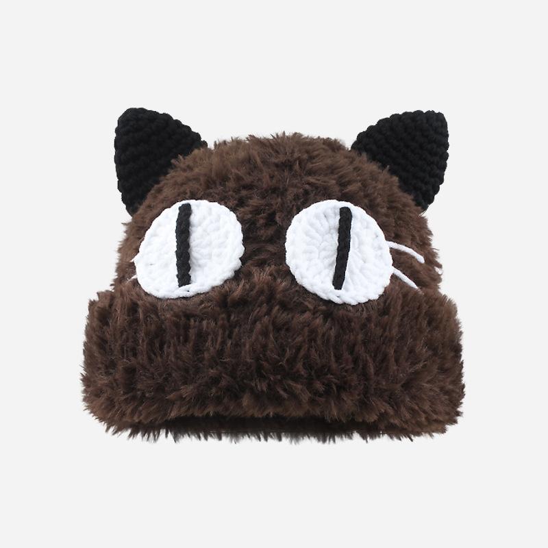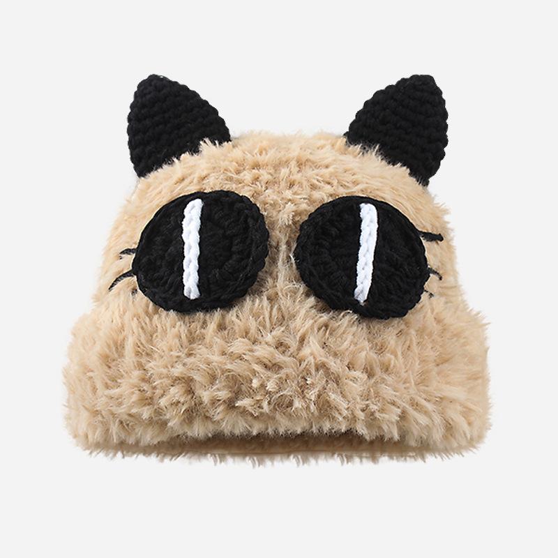 Осень и зима милый кот большие глаза плюшевая вязаная шапка для пары утолщенная теплая большой обхват головы универсальная шляпа-ведро