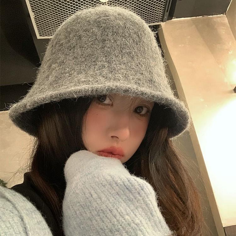 Зимняя универсальная панама смешанной расцветки для женщин, теплая и подчеркивающая маленькое лицо, плюшевая вязаная панама, темпераментная универсальная шляпа-ведро