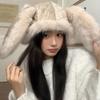Игривый зайчик~ милая плюшевая шапка с кроличьими ушками, женская зимняя теплая шапка для защиты ушей из искусственного меха, лыжная шапка