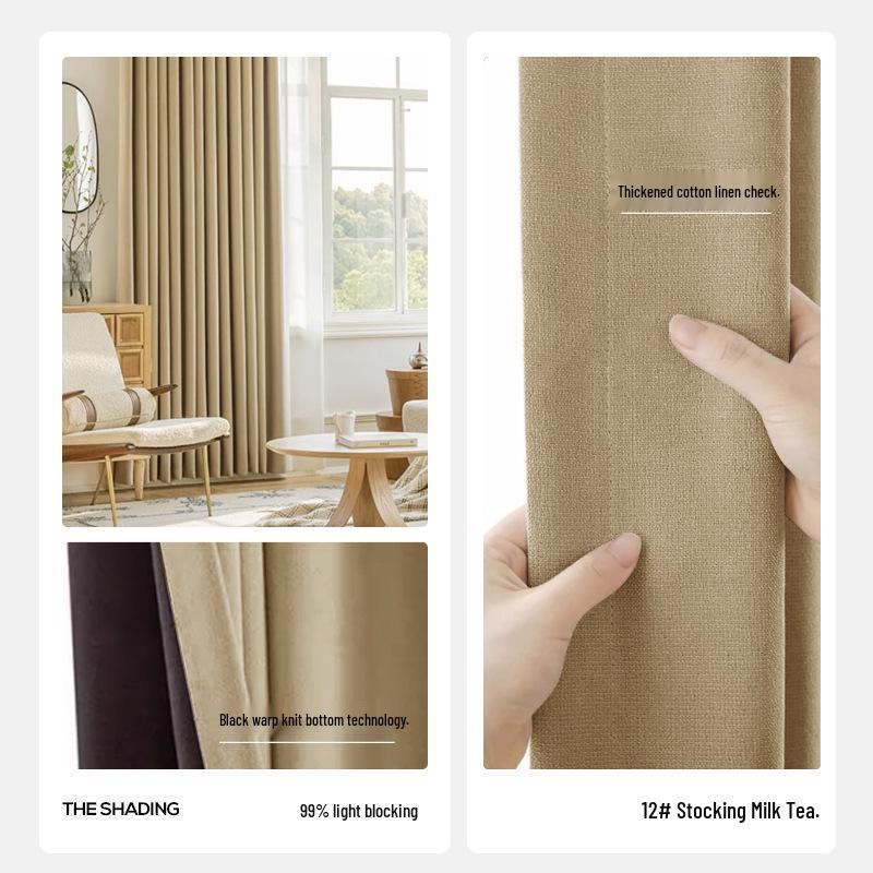 Шаосинские светонепроницаемые шторы: Современный минималистичный дизайн, утолщенный хлопок-лен, светоблокирующий, теплоизолирующий, для спальни и гостиной.