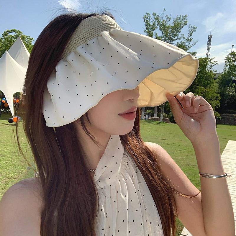 Плиссированная шляпа-цилиндр в горошек женская летняя с широкими полями, защищающая от ультрафиолета, солнцезащитная шляпа, уличная маска для лица, солнцезащитная шляпа