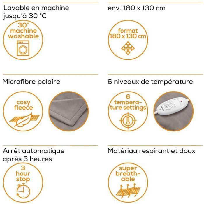 HD 75 - Couverture chauffante Taupe - Ultra douce, respirante et temprature réglable avec arret automatique- 180 x 130cm