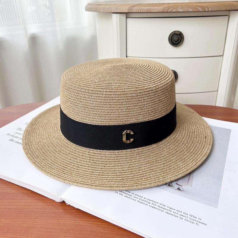 Женская летняя шляпа от солнца с плоскими полями для отдыха на море, модная шляпа-федора из тонкой соломы, элегантная, с пляжной тульей