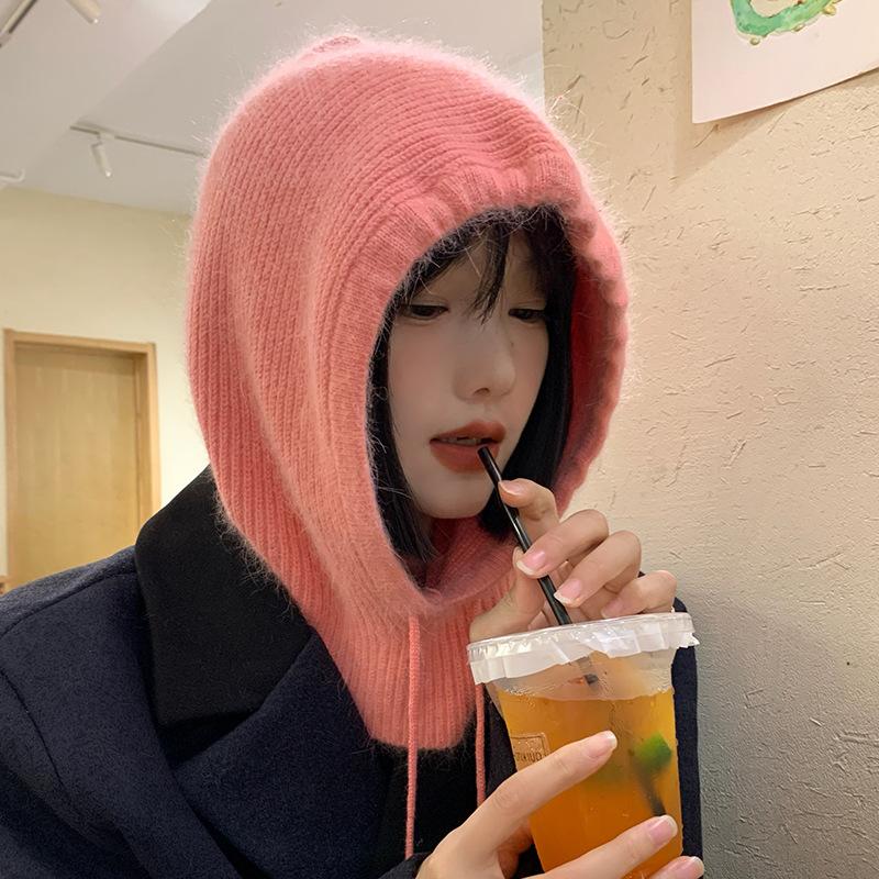 Шапка-балаклава женская осенне-зимняя из кроличьего меха теплая утолщенная шапка-шарф интегрированная шерстяная шапка головной убор головной убор