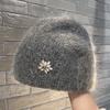 Вязаная шапка из кроличьего меха женская осенне-зимняя модная утолщенная теплая шапка универсальная шерстяная шапка со стразами защита для ушей головная шапка
