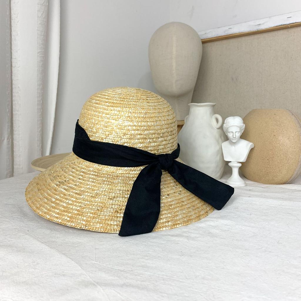 Ленточная Солнцезащитная Пляжная Шляпа Элегантная Дорожная Женская Шляпа с Большими Полями Соломенная Соломенная Шляпа Морской Отдых Шляпа-Ведро Рыбака