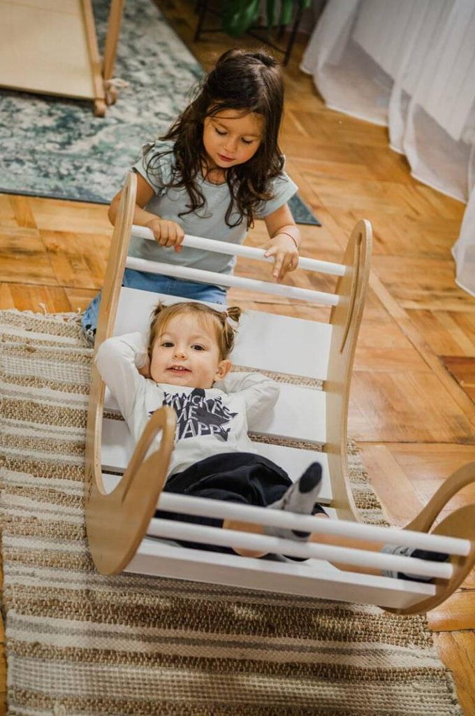 Улыбка деревянная качалка белая и серая