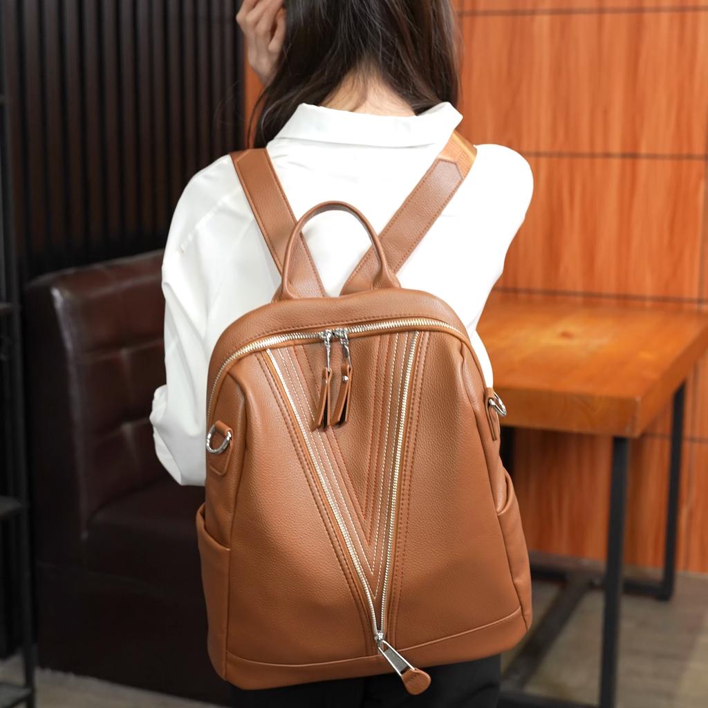 Мягкий кожаный рюкзак Женский рюкзак для поездок Большой вместимости Студенческий школьный рюкзак