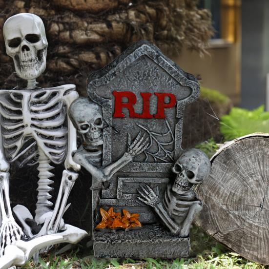 Это креативное украшение на Хэллоуин универсально и подходит для различных обстановок, что делает его незаменимым атрибутом ваших хэллоуинских празднеств.. Поднимите свой декор на новый уровень с этой уникальной и привлекающей внимание статуей надгробного камня.