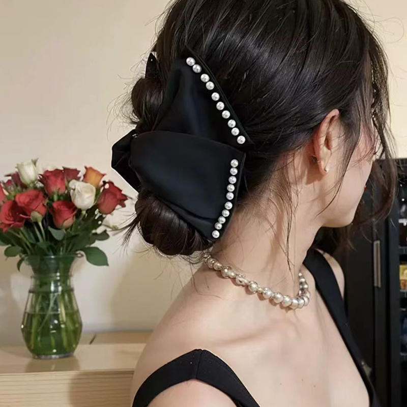 Винтажные заколки для волос для женщин черные атласные крабы для волос стразы жемчуг заколка для волос большой бант аксессуары для волос свадьба свадебная вечеринка элегантное украшение для волос